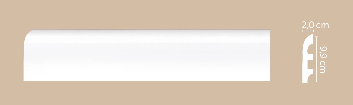 Плинтус напольный DECOMASTER Артпрофиль - белый (под покраску) А016/20 2000*99*20мм из полистирола скрывает неровности, а также выполняет декоративные задачи: с его помощью можно визуально объединить или четко разъединить плоскости потолка и стен.
